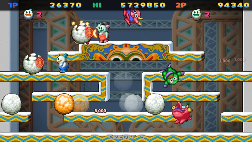 “这是对1990年流行的街机平台动作游戏《雪兄弟》的现代翻拍,其特点是适合所有年龄段的人。它还通过新阶段和新模式提供了多样化的乐趣,并允许玩家享受原版游戏。”